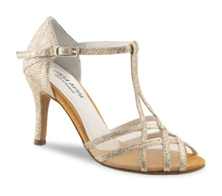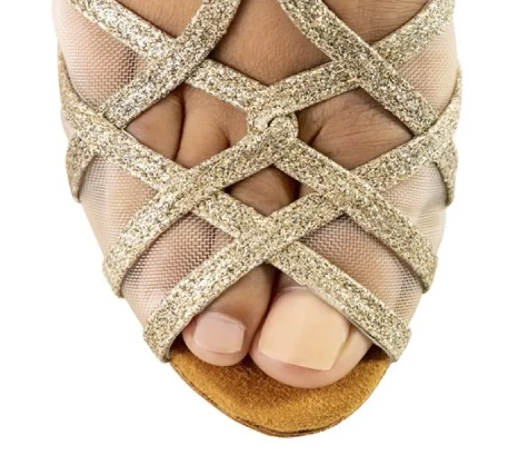 Flot guld glimmer dansesko med 7,5 cm hæl højde fra Anna Kern. Designet i italien. Super sko også til fest og bryllup