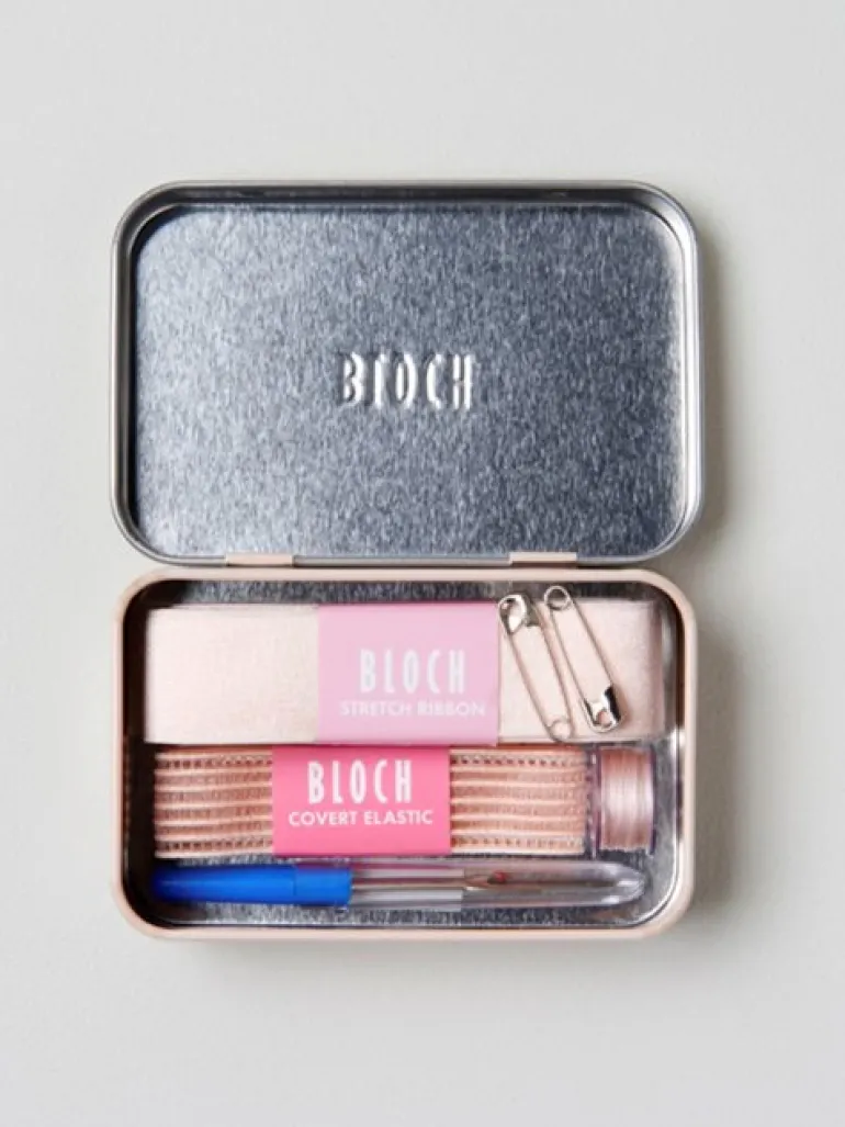 Metal æske medi balletfarve med Bloch logo. Æsken indeholder: