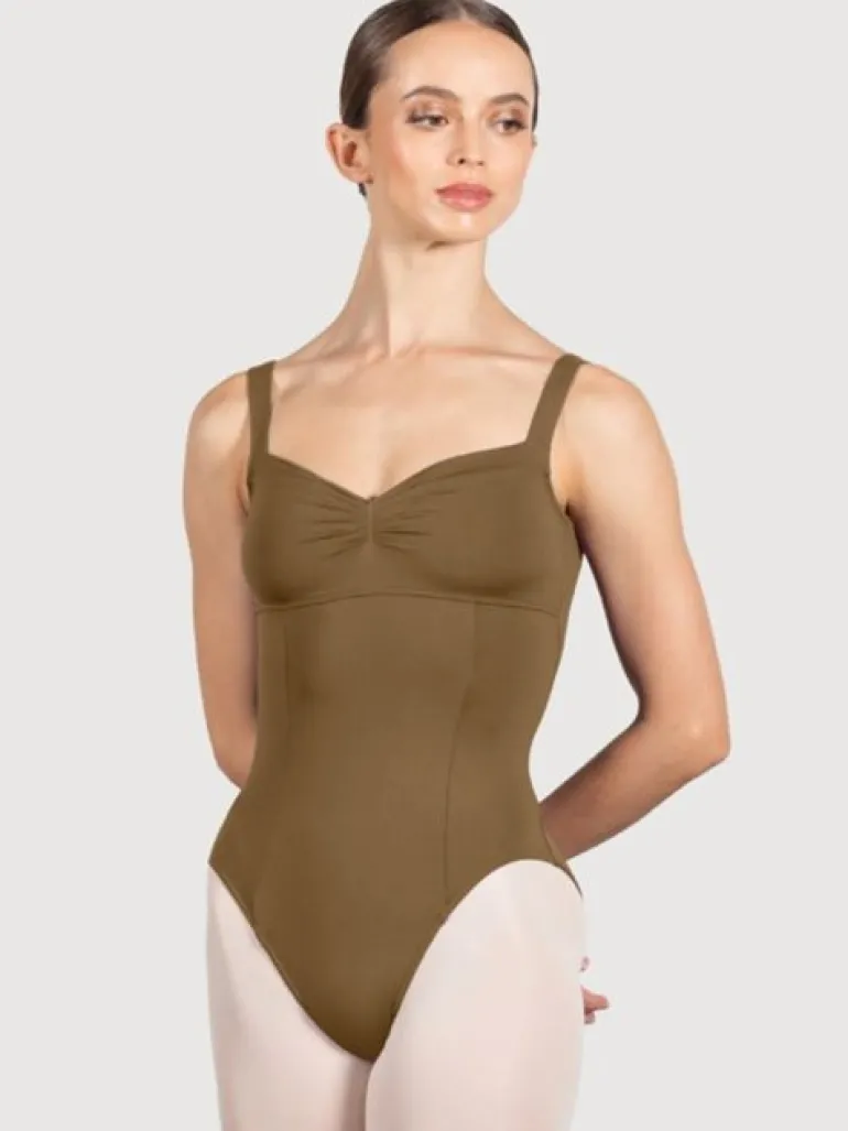 Bloch Ava dragt i den smukkeste mandel farve med tank stropper og rund ryg til ballet og gymnastik
