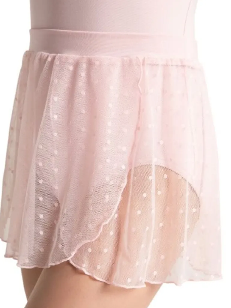 Capezio lyserød pull-on skørt til piger fra Spot On-kollektionen er et nemt og stilfuldt skørt til ballet og gymnastik. Det enkelt-lags mesh med polkaprikker giver et sødt og feminint look. Perfekt til at fuldende dragten med polkaprikkede mesh ærmer. Elastisk taljebånd sikrer en behagelig pasform. Elastisk taljebånd 2,5 cm bred af 88% polyester, 12% spandex. Mesh: 95% nylon, 5% spandex