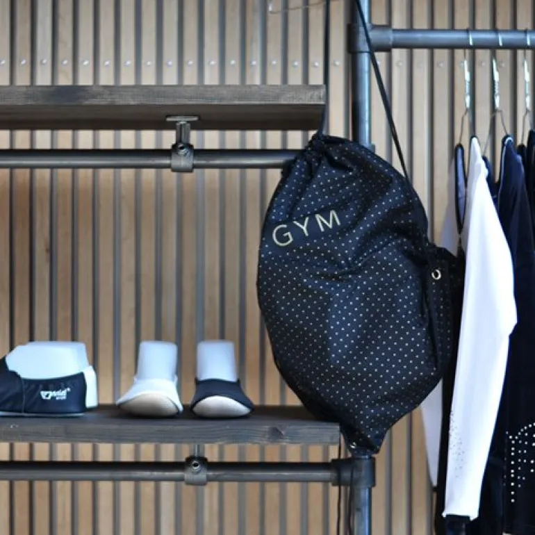 Gymnastikpose sort med guldtryk – GYM