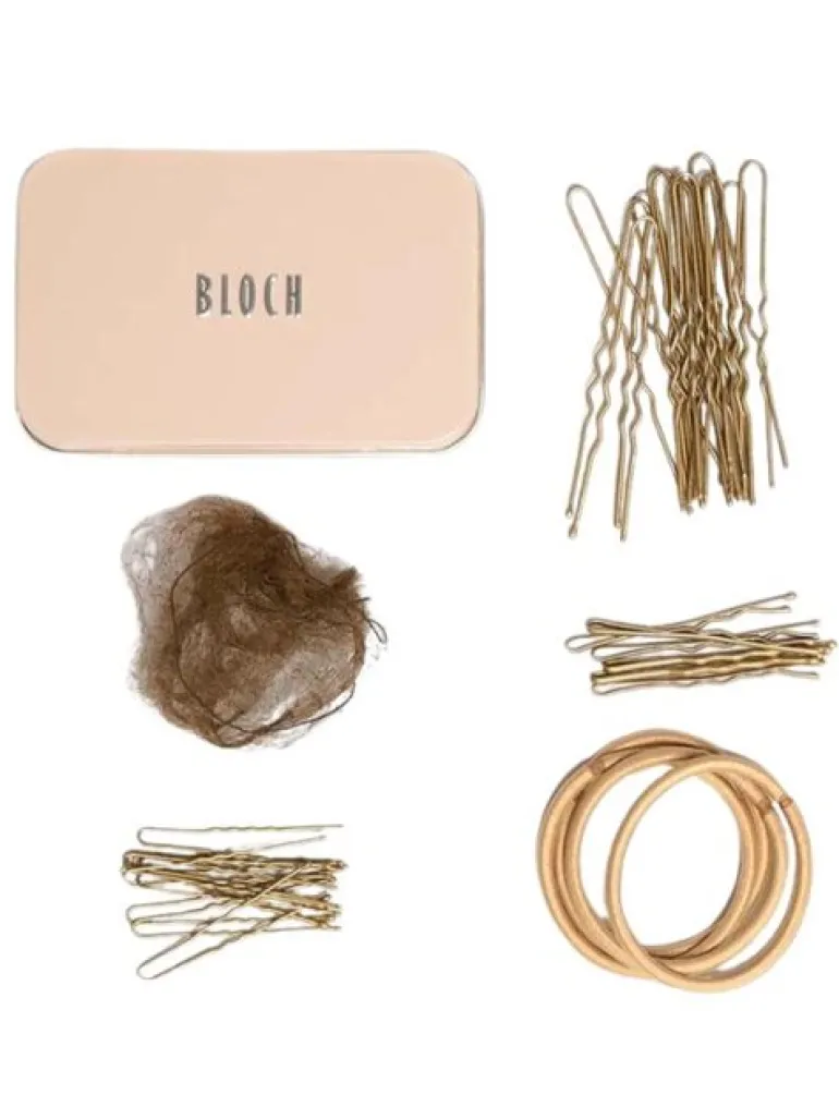 Lille metalkasse med lysebrun hårtilbehør – BLOCH logo