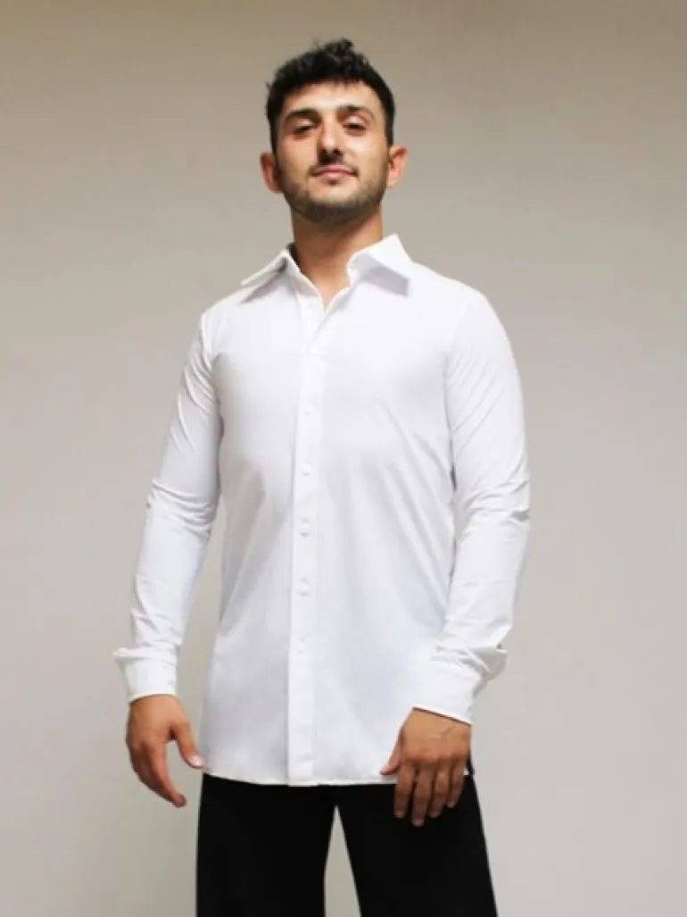 Hvid body danseskjorte til unge drenge og mænd. Model chicago. 92%polyester/8% elastan