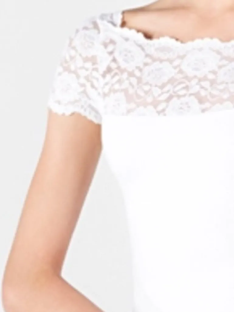 So Danca flot hvid dragt med blonde og elegant halsudskæring