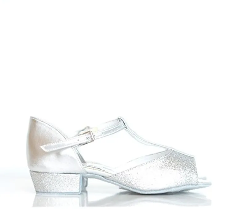 Få din lille danser til at skinne med disse populære pige dansesko Marina silver fra Freed of London. Med sølv glimmer og en sød t-rem er de perfekte til små piger. Med en hælhøjde på 2 cm er de både stilfulde og behagelige at danse i.