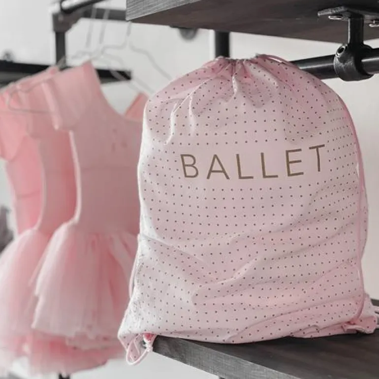 Rosa balletpose/rygsæk med guld tryk “BALLET”