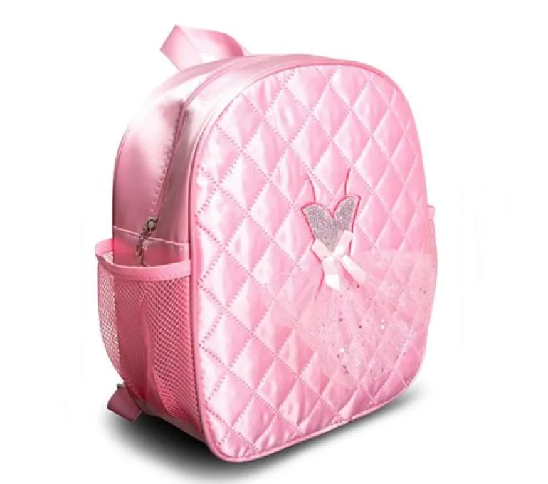 Fin lyserød Capezio ballet rygsæk med ballet tutu. Ballettasken måler 25cm x 28cm x 10 cm