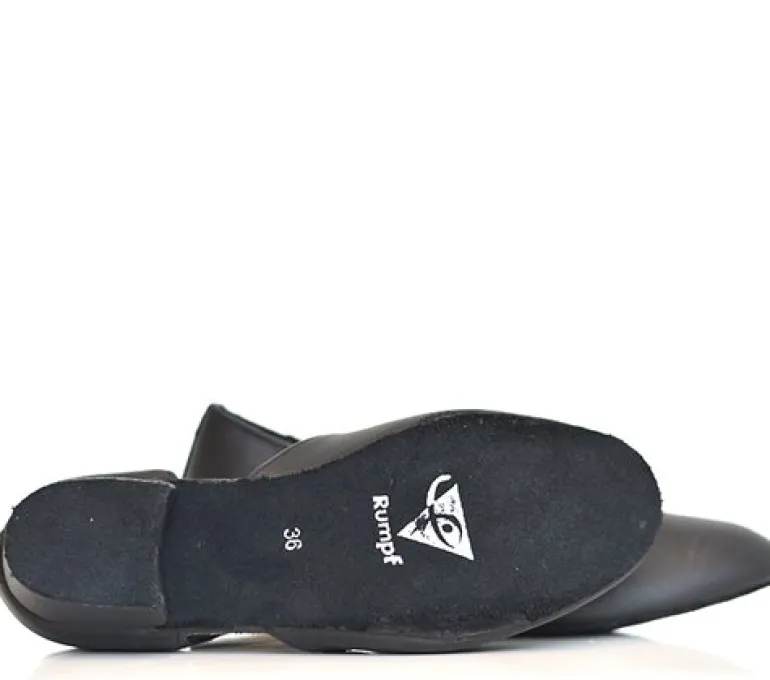 Rumpf træningssko 1313 i sort blødt skind med spaltsåler. Hælhøjde 2 cm