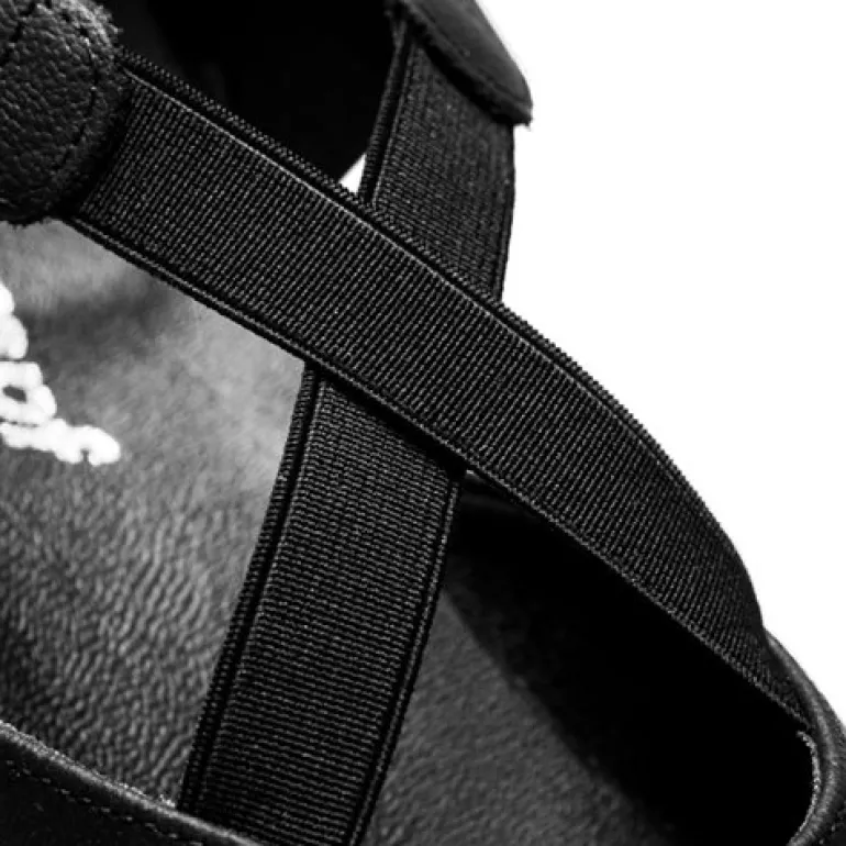 De skrå elastik remme henover forfoden, gør at danseskoen sidder rigtig behagelig på foden