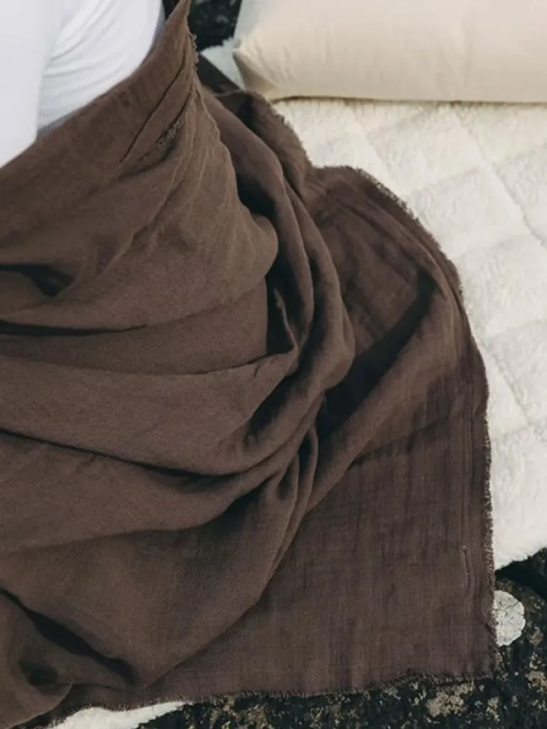 Det mørkebrune yogasjal fra Simple Days er et alsidigt tæppe eller sjal, der er perfekt til mange formål. Lavet af naturlige materialer, en blanding af bomuld og hør, er dette yogasjal blødt og lækkert at have på. Det er ideelt til hyggestunder, til at lune sig med eller til før og efter yoga eller meditation. Sjalet er gennemfarvet og har små frynser langs kanten.