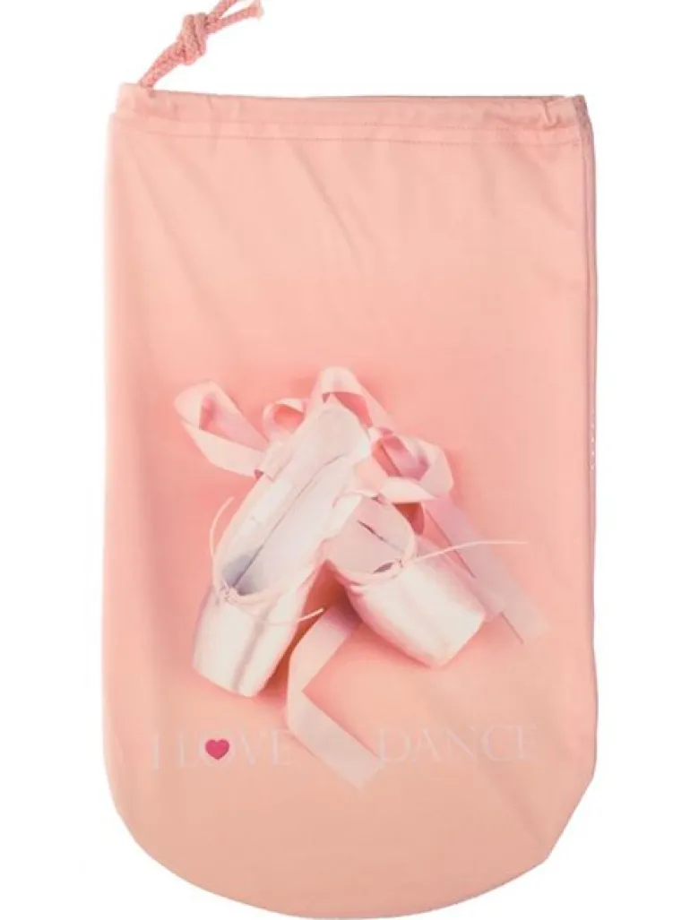 Super flot skopose til balletsko i ferskenfarvet med balletskoprint. 30X17CM