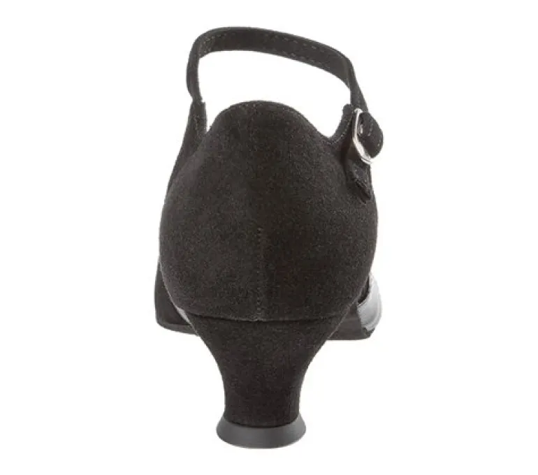Hælen er en stabil 4,2 cm spansk hæl og skoen lukkes let med trykknap. Flot klassisk dame dansesko der er lukket i tåen.