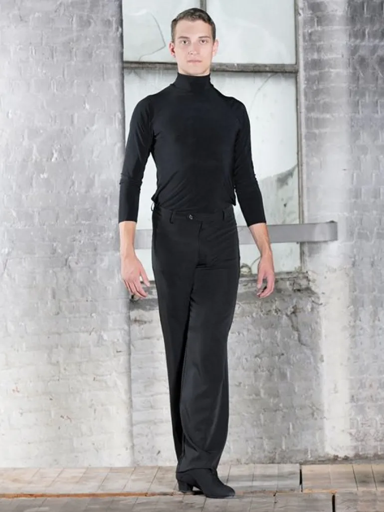 Flot enkelt glat sort herrebuks til dans med vidde i benene – sidder tæt i taljen og over bagdelen. Model Milano