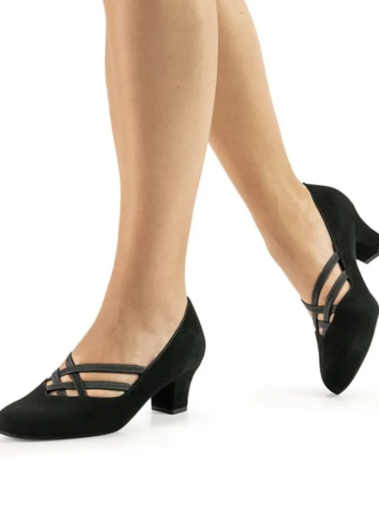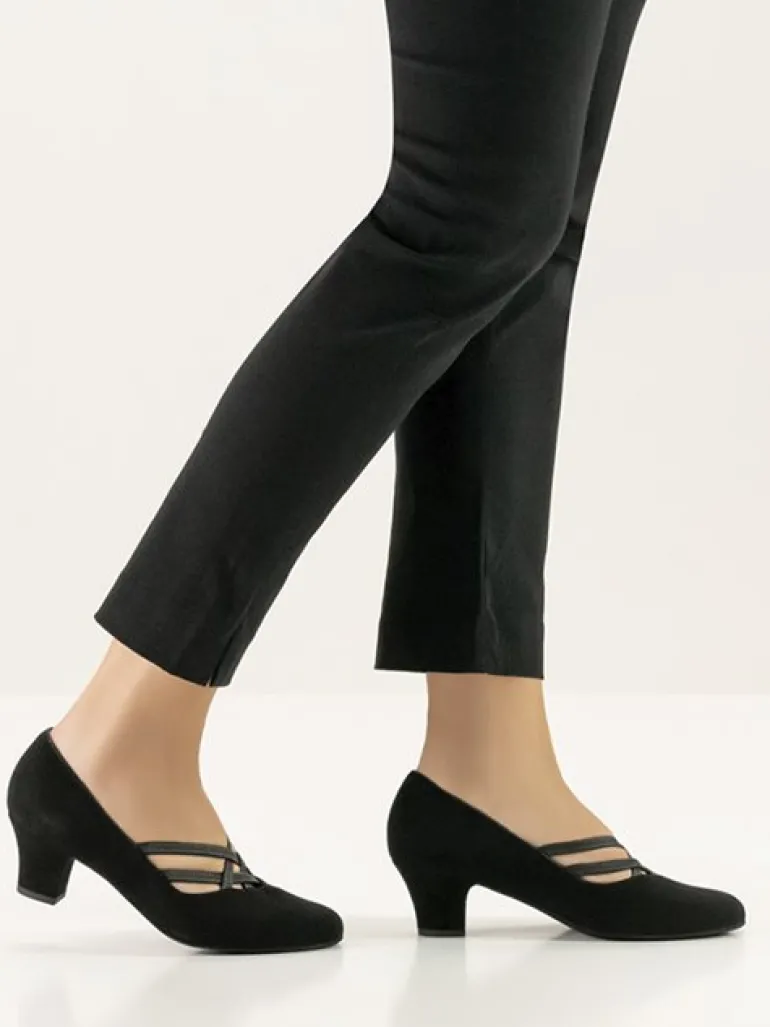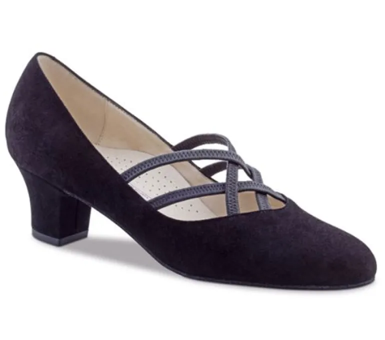 Werner Kern sort elegant lukket dansesko i blød ruskind med læder elastikremme