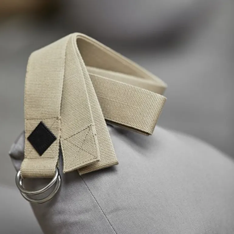 Simple Days bomuldsbælte i beige. Stroppen gør det nemmere at komme dybere og længere ud i dit stræk.