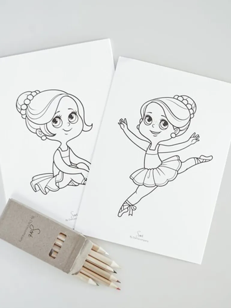 9 stk ballettegninger A5 inkl. 6 stk farveblyanter