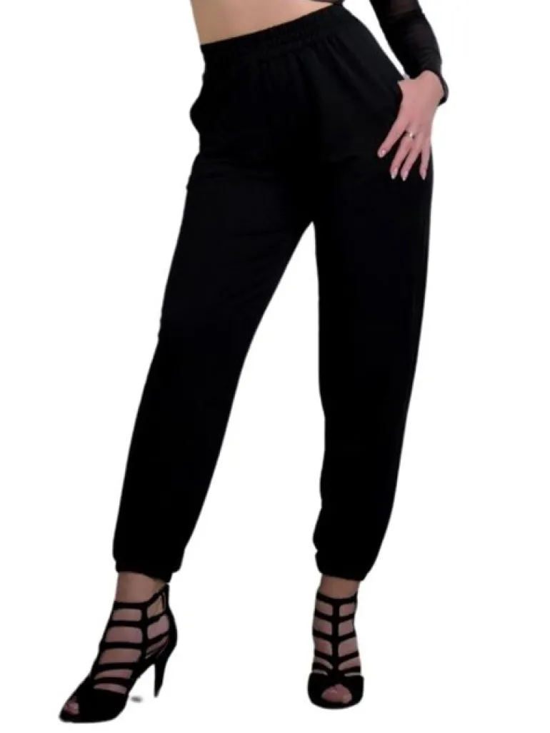 Super flotte afslappede dansebukser i sort. Disse tidløse og alsidige bambus dansejoggers har en afslappet silhuet, elastisk taljebånd og to funktionelle lommer på lårene. Med ingen knapper, lynlåse, elastikker eller snore er disse bukser enkle og behagelige. Ligger du mellem to størrelser er det bedre at gå en størrelse op.