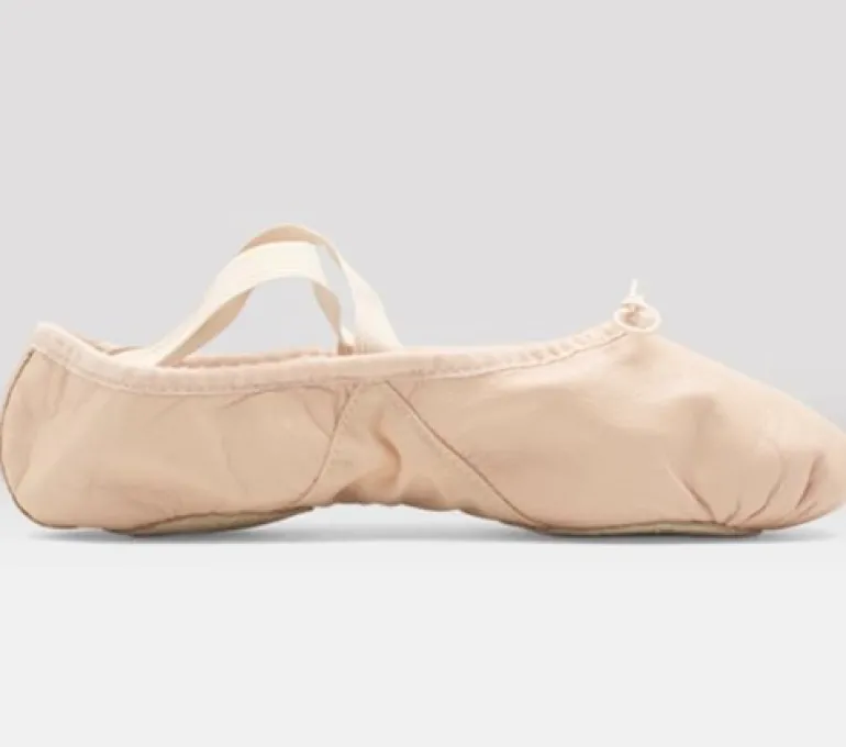 Bloch spring/soft balletsko med split sål i kombination af skind/stof. Meget lækker blødt skind kombineret med lærred i midten af skoen
