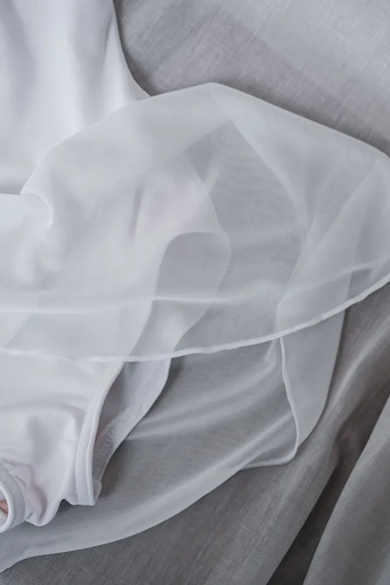 Capezio hvid dragt med påsyet skørt og søde ærmer af chiffon