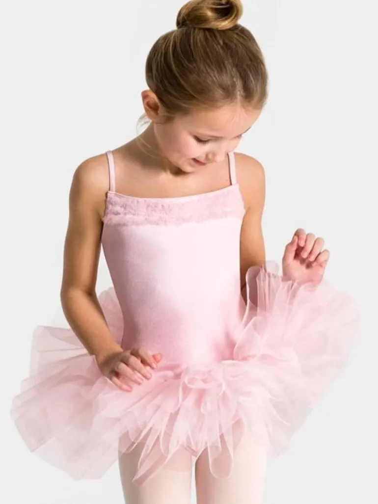 Capezio dragt med påsyet tutu og små flæser foran i rosa