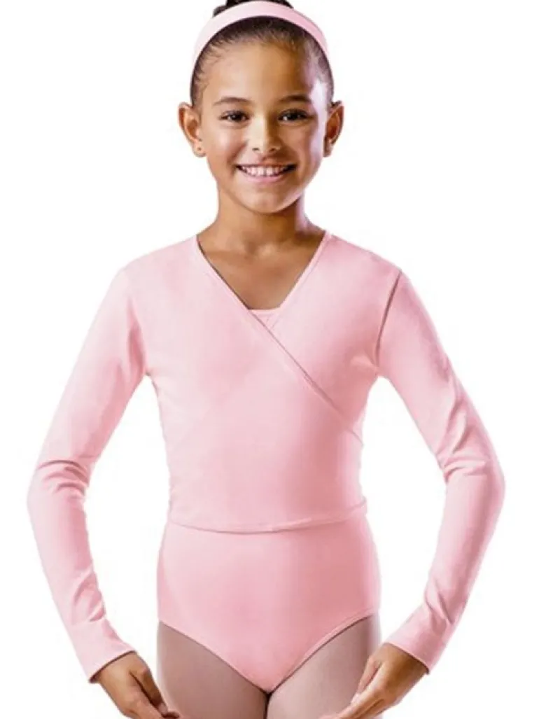 Bloch Cross-over bluse med lange ærmer til piger i mørk rosa. 90%bomuld/10%lycra – farven er som på billede 2