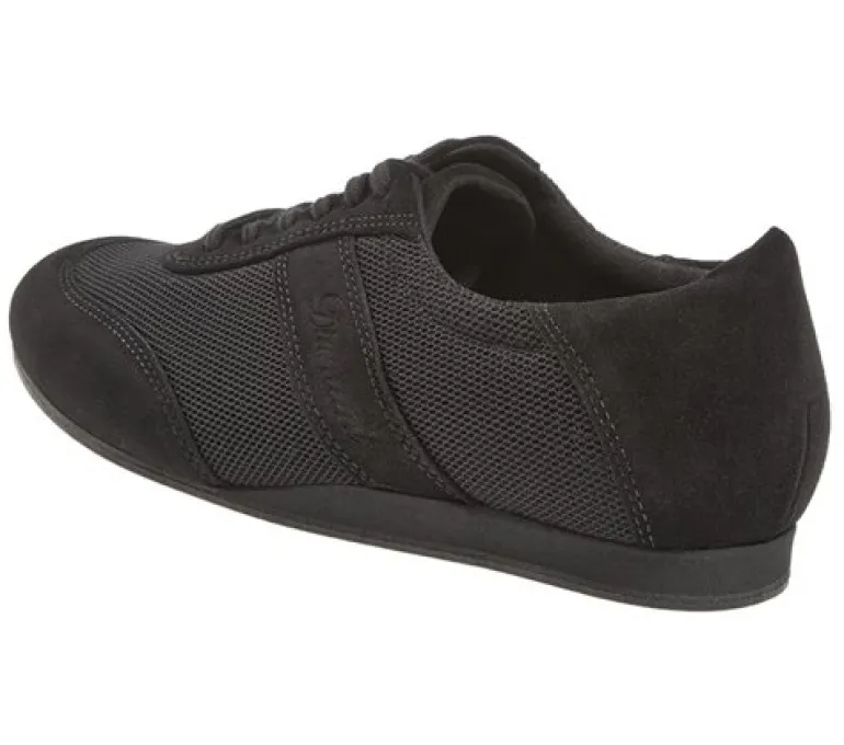 Diamant dansesneaker med vario spin sål. Sporty Oxford design med lukket 6-hullers snøre. Blødt sort ruskind kombineret med sort mesh i højeste kvalitet fra italien. Ny udviklet sål man nemt kan dreje på og står fast når man sætter foden hårdt i gulvet. Perfekt på glatte gulve.