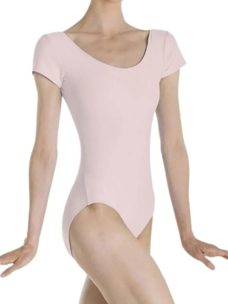 Wear Moi basic dragt i fin lys rosa farve med korte ærmer og rund hals. 90% poliamid/10% elastan.