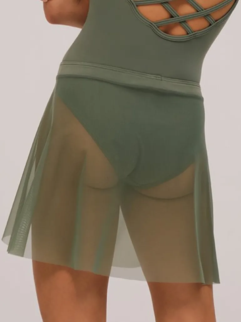 Yndigt mesh pull on faux wrap skørt i en lækker olivengrøn farve fra Grishko. Skørtet har en blød matchende 1″ stofkant, der passer perfekt til din Grishko dragt.