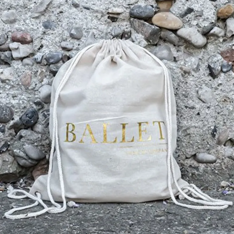 Hør rygsæk/mulepose med guld BALLET skrift