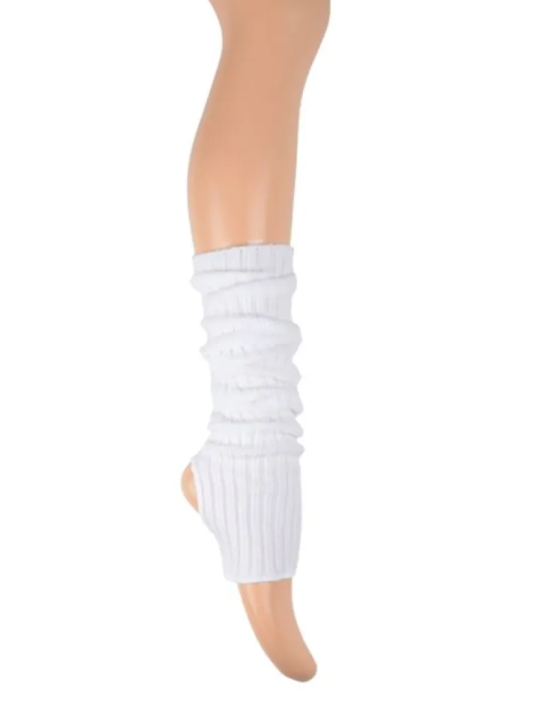 Hvid rib strik benvarmere til dans og ballet. 91%acryl/7%elastan/2%andre fiber