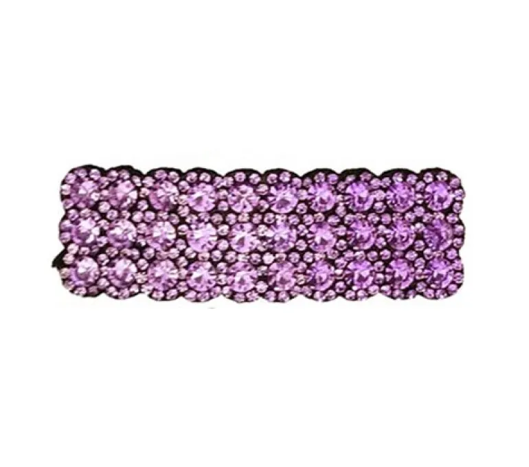 Flot clic-clac hårspænde med både små og store lyselilla rhinsten. Spændet måler 2,5 cm x 7,8 cm.