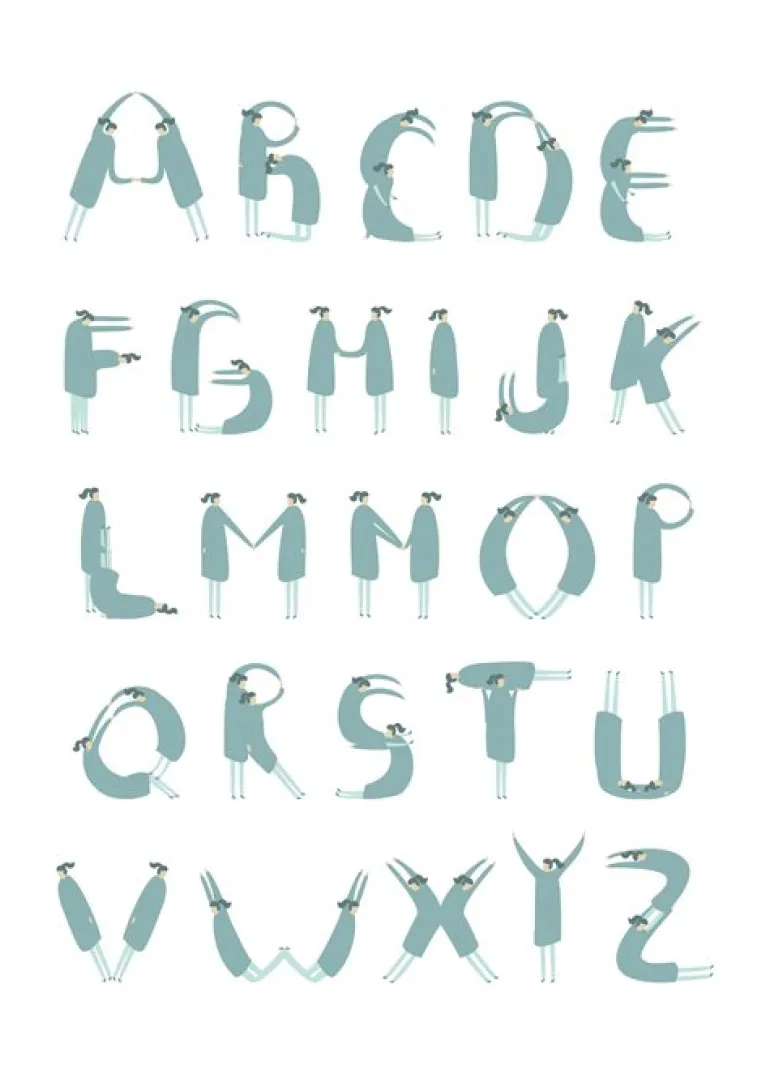 yoga ABC plakat. Denne plakat viser yogastillinger formet som alfabetet, hvilket gør læring sjovt og aktivt. Ideel til skoler, hjem eller yoga studios. Styrk krop og sind på en kreativ måde!
