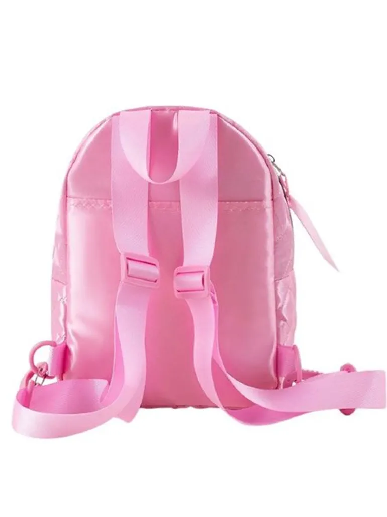 Bloch lille rygsæk til balletudstyret samlet ét sted til den lille ballerina. Let at bære med et top håndtag plus justerbare skulderremme, så du kan tilpasse den til den korrekte pasform. Fremstillet med blød quiltet satin, met et klar ‘BLOCH’ logo på forsiden med stjerneskærme af palietter. Dobbelt lynlåslukning med bånd. Intern lomme til drikkedunk. To indvendige lommer og et lynlåsafsnit. B26 x H26 x D10cm