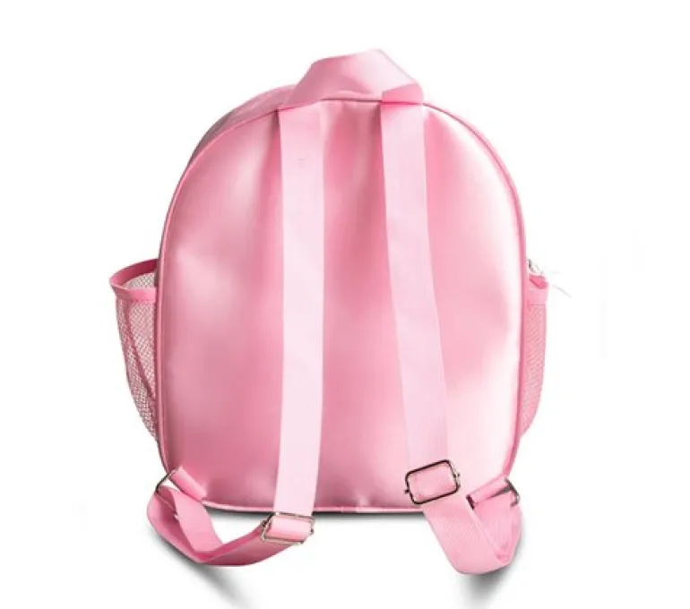 Justerbare skulderstropper så den nemt kan tilpasse sig til enhver lille ballerina. Små pailletter på det fine 3D tutu print. Stor inderlomme og to udvendige meshlommer, som er perfekt til vandflasker og andet tilbehør. Metal ballerina lynlåstræk. 100% Polyester