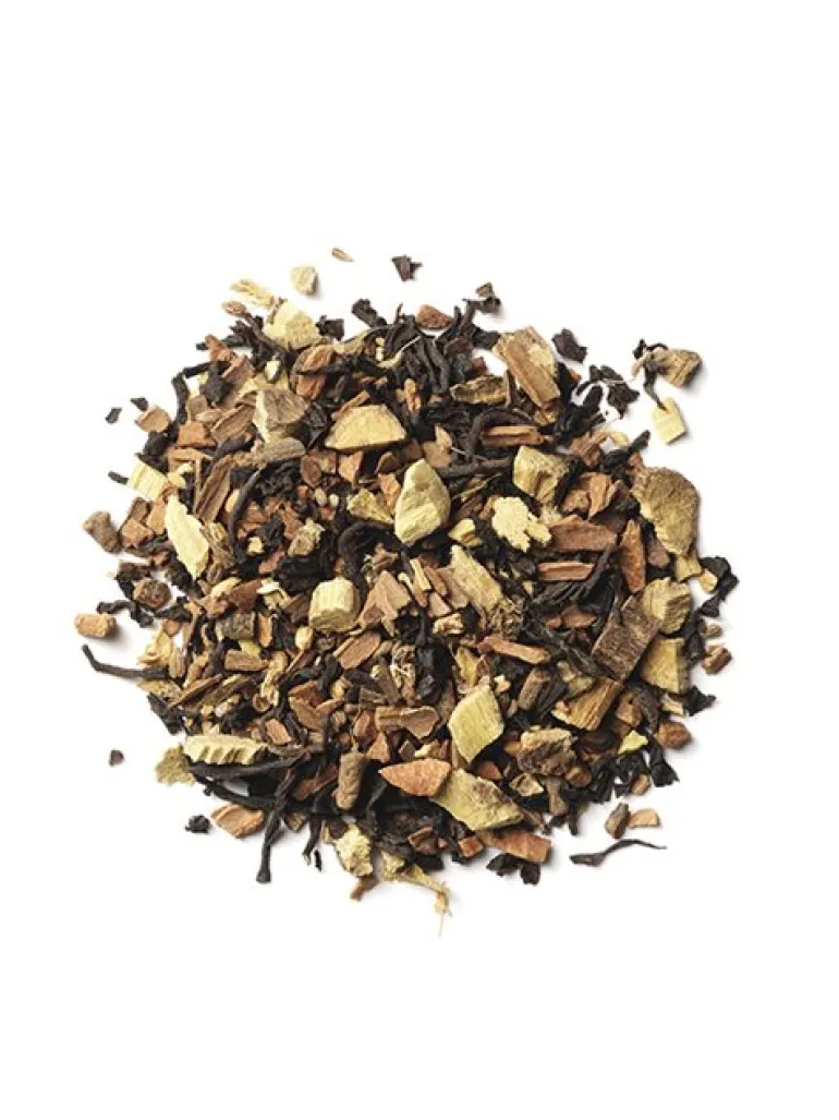 Indeholder: YogiChai (Kanel, ingefær, nellike, kardemomme), sort assam te, lakridsrod*, aroma,anisfrø. *Indeholder lakrids.